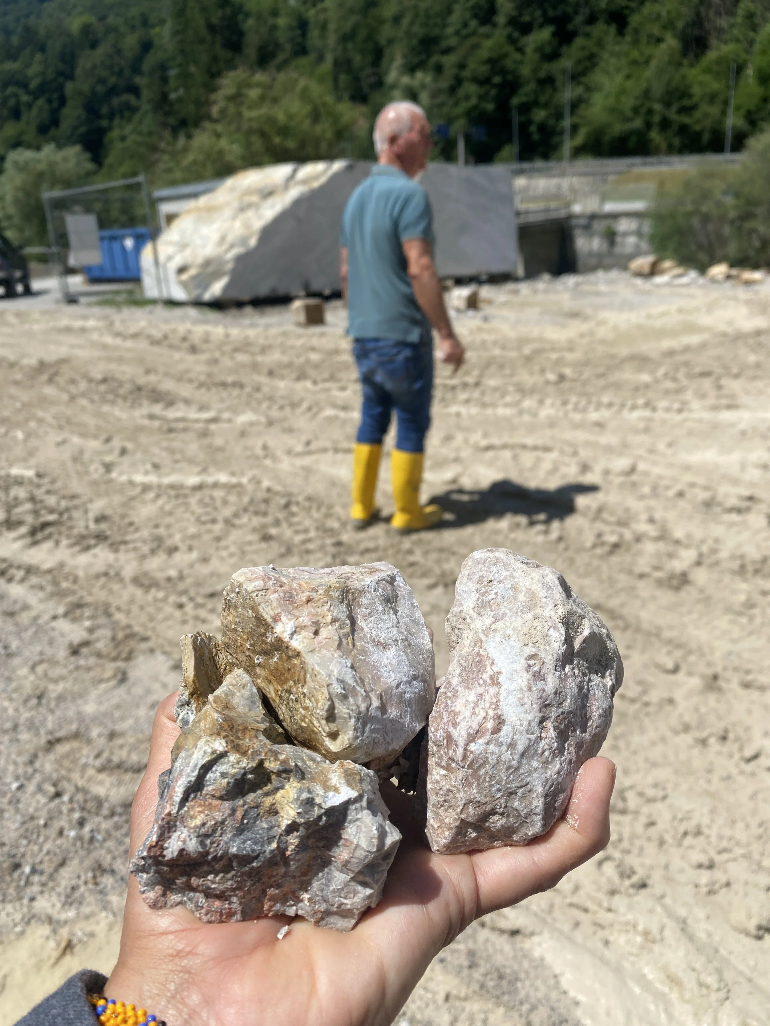 A particular set of rocks from a local Arabescato Orobico mine.